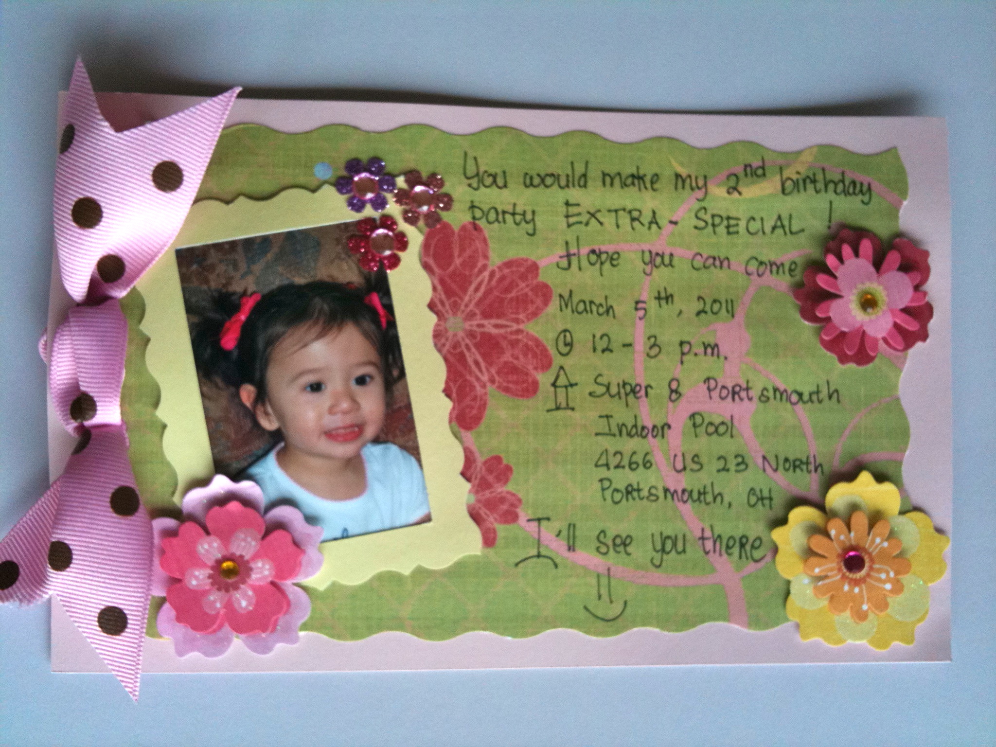 Guess what? Couple of weeks ago I made our oldest girl’s 2nd birthday invitations… in fact made about 20 cards!!!