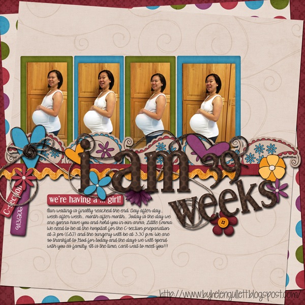 I created this layout to remember the last day I had this bump, my husband (like he did before with our first baby, Abigail) took my last day with this the baby bump, the minutes before the C-section. Yes, I had the BIG one! Imagine my back pain and sciatic nerve pain, please! đ LOL!!