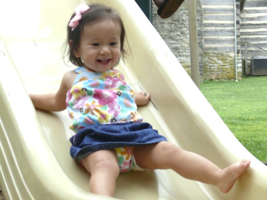 Abigail was so happy at the first time she jumped into her kiddy pool. She also loves to swing and slide. Abigail learned how to swim in bigger pool with the puddle jumper, explored new things and had so much fun inside and outside the house. At 18 months old, she can count 1-10 in English, Spanish and Indonesian. Abigial also can read her ABCs, love singing and dancing.