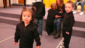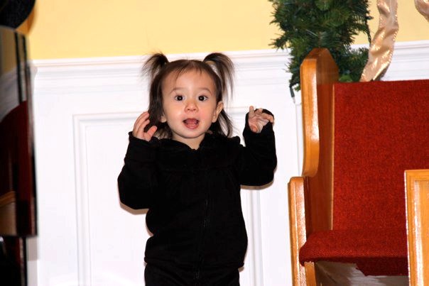 This Christmas was different. She actually took a part Church Christmas Play at last Christmas (Dec 19, 2010), as one of the cute little sheep. There were 3 other little sheep who were only couple months older than her. Our children church teachers had to put a bowl of Animal Cracker to keep these little sheep to stay close to the manger.