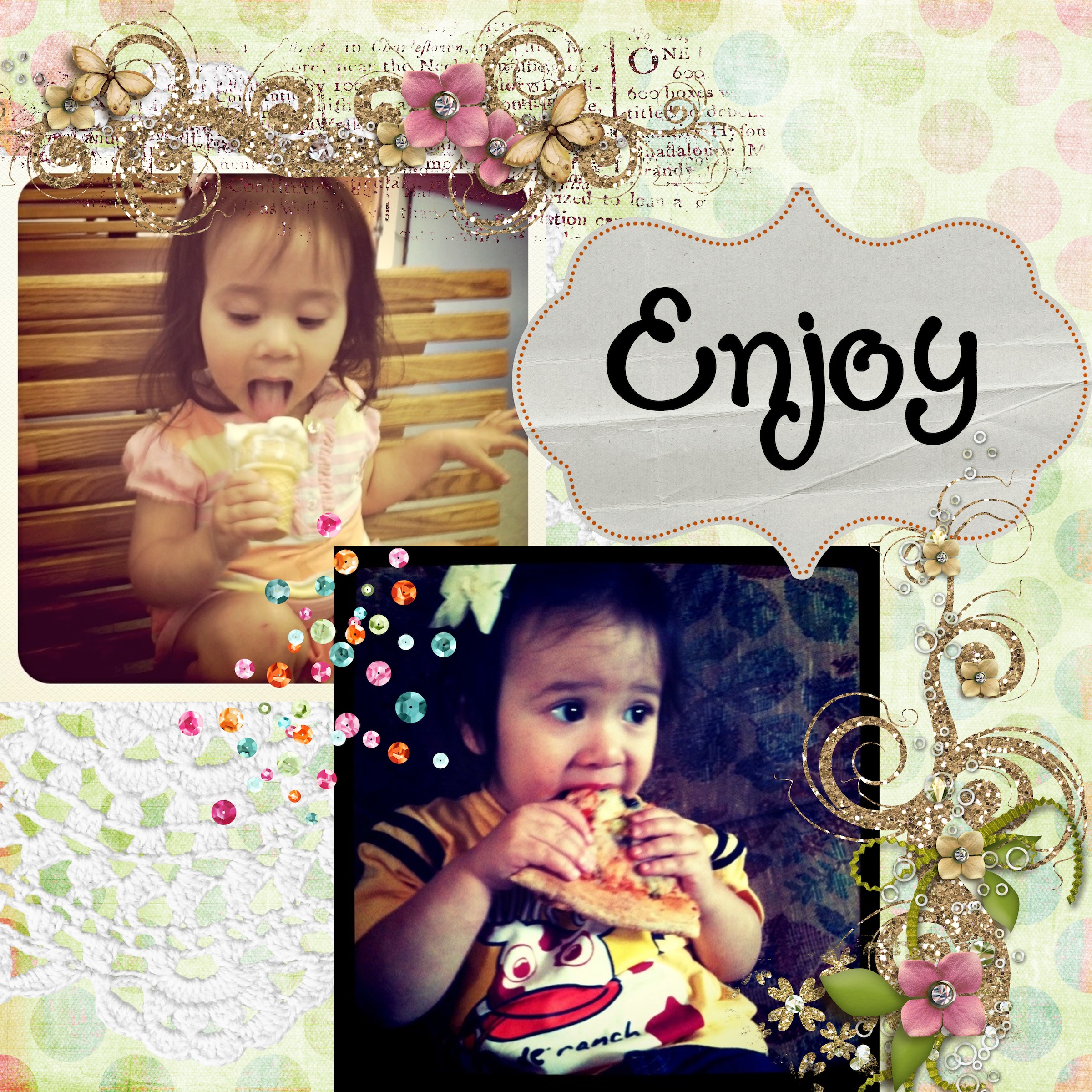 I used her kits, the Fragment Fairly, on some of my layouts. Isn’t that pretty? If you wanna buy it, it’s only $2 at her store.
