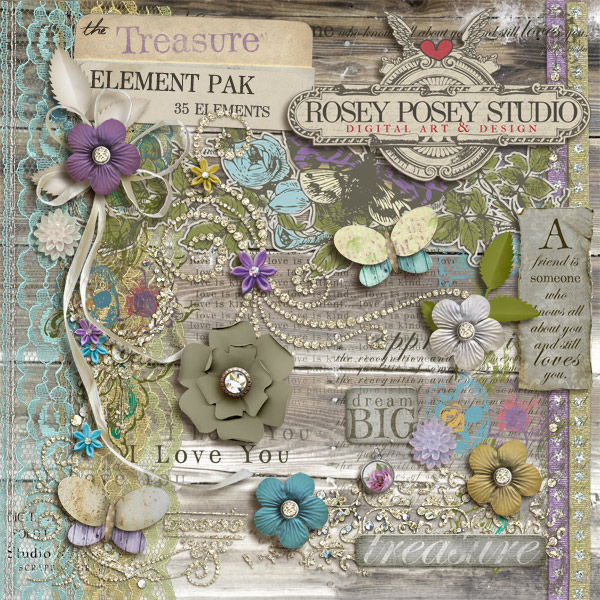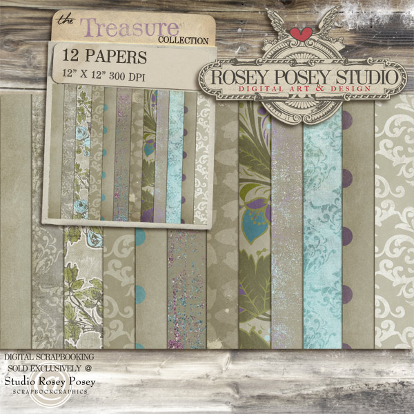 I was so happy and thrilled to know that I Won the prize from Studio Rosey Posey yesterday (10/7). The New Collection, The Treasure Collection, is AWESOME! You will see why. You can do lots of beautiful layouts to keep your most treasures, your memories of family, friends and even things that you want to remember for life time.